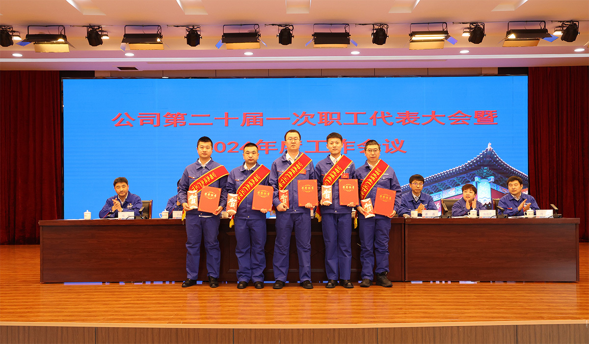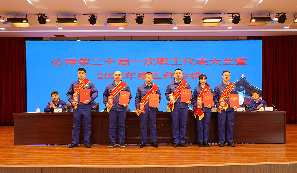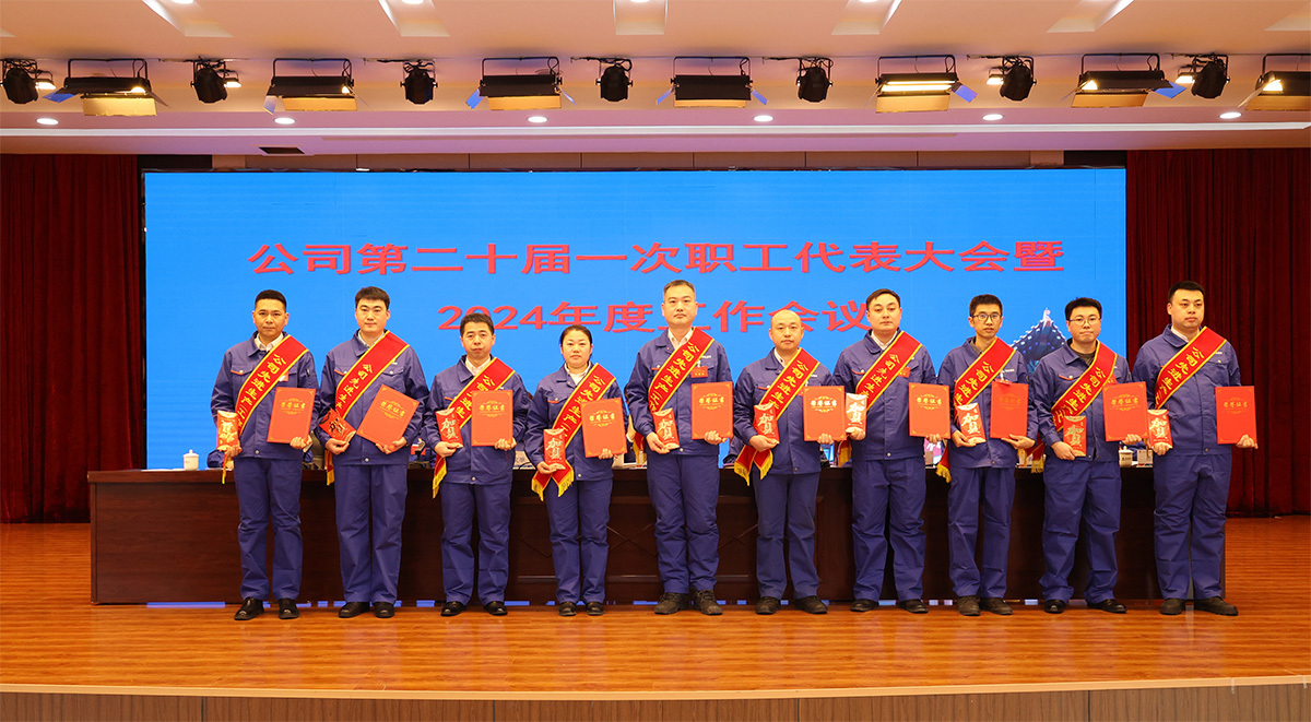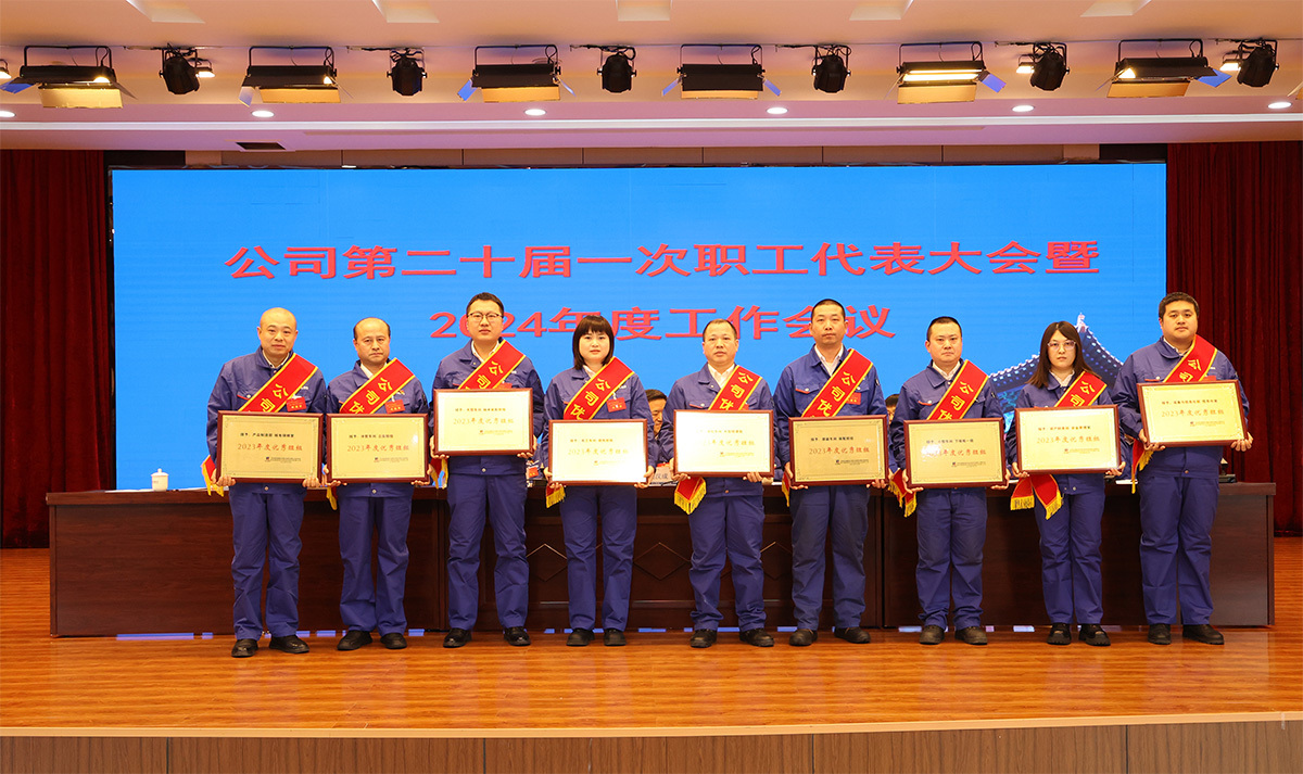 公司領(lǐng)導(dǎo)為獲得表彰的先進(jìn)個(gè)人和先進(jìn)集體代表頒獎(jiǎng)