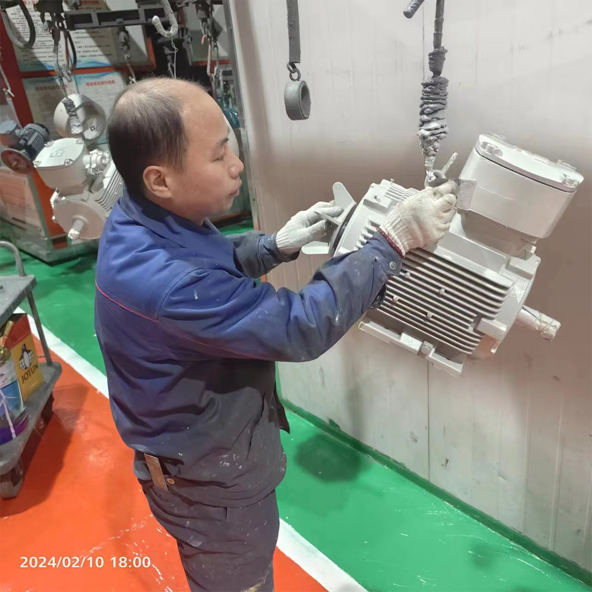 噴包車間噴漆工張永剛、孟憲武、劉安華、郭鳳臣等職工,在春節(jié)期間,放棄與家人的團(tuán)聚,堅(jiān)守、奮斗在各自崗位上,搶制項(xiàng)目電機(jī)噴漆進(jìn)度,用行動詮釋著責(zé)任和使命。