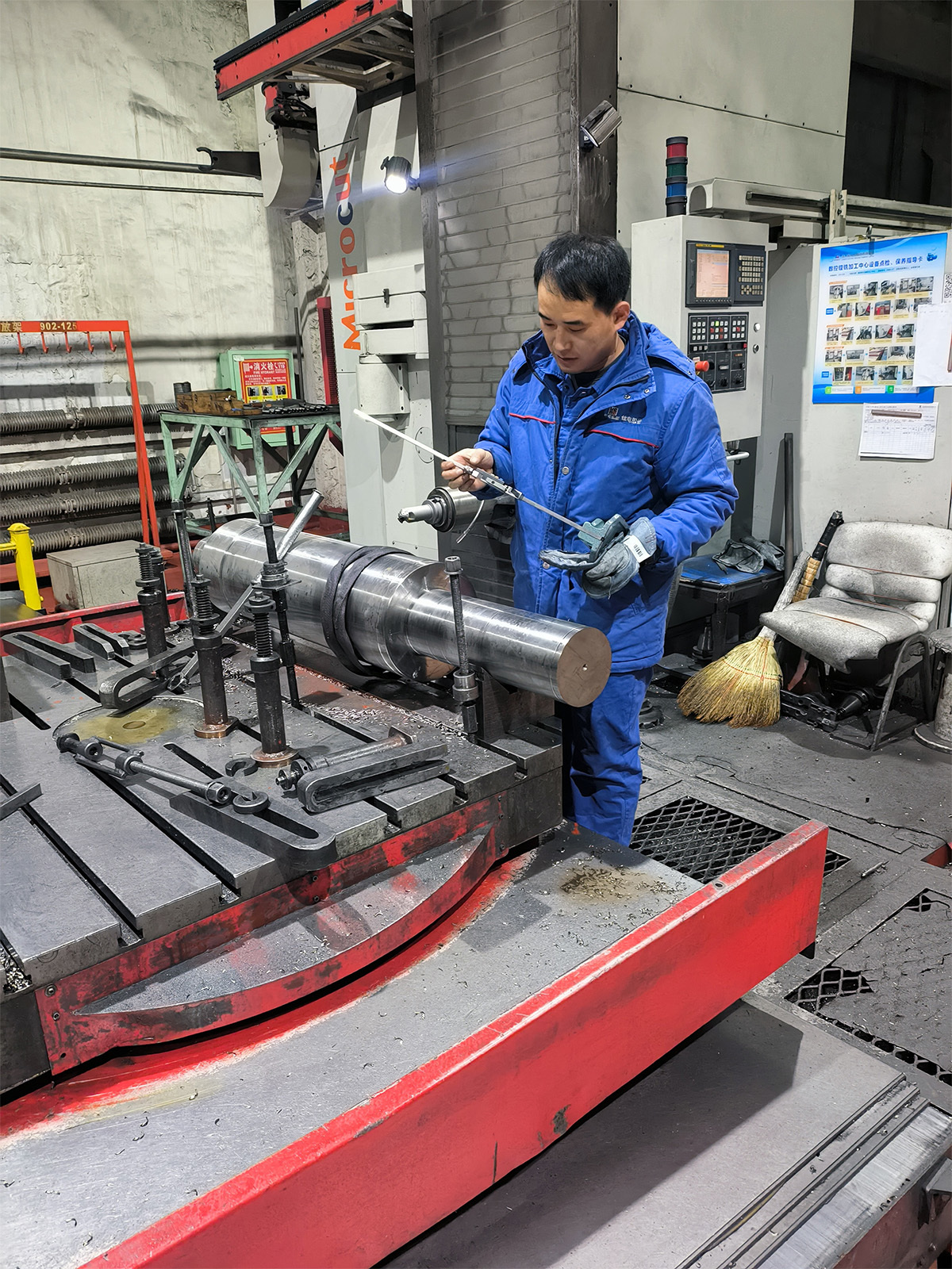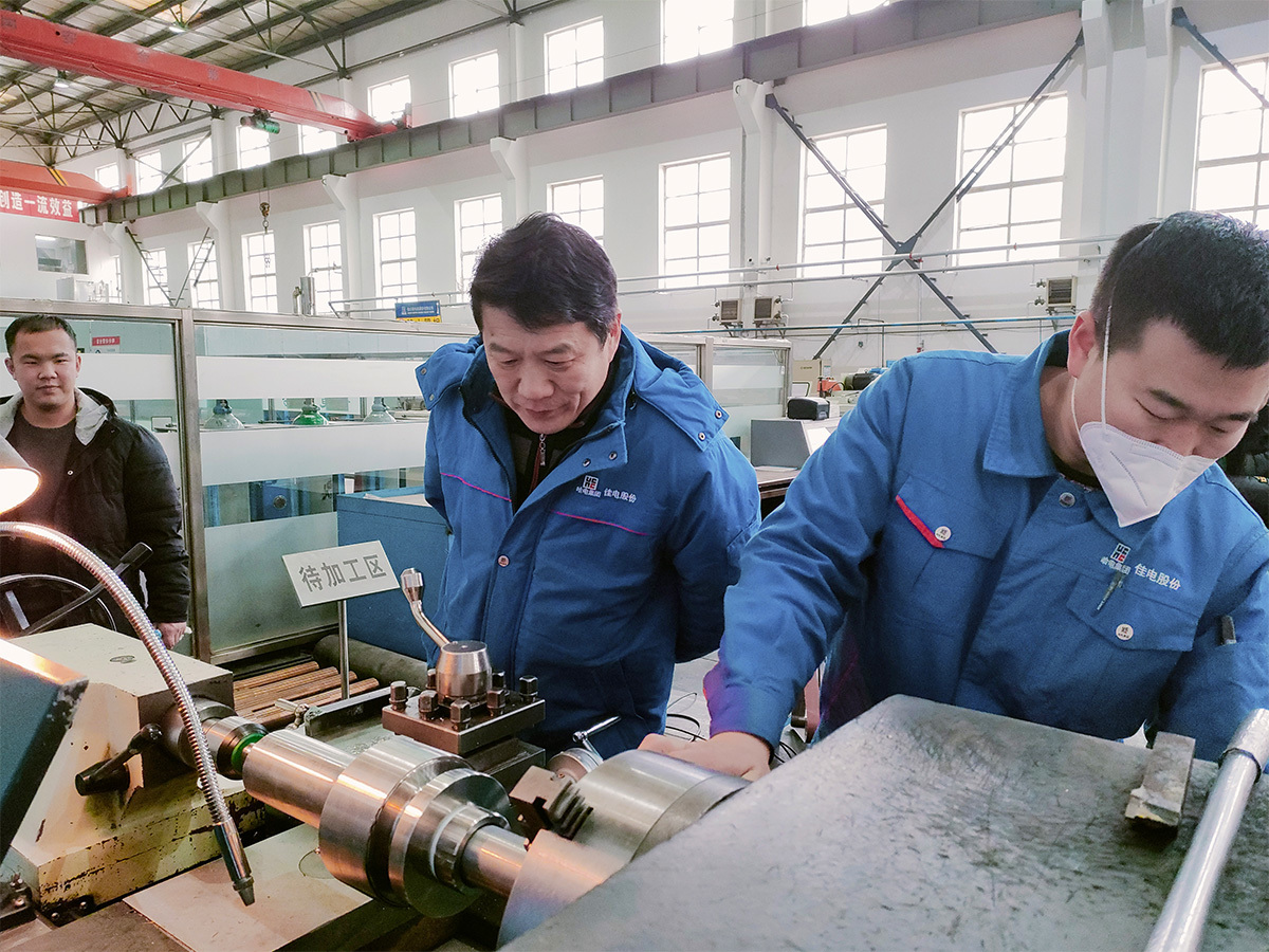 小型車間準(zhǔn)備組鏜銑工吳春強(qiáng),主動放棄春節(jié)假期,搶制急要項(xiàng)目電機(jī)零部件,高標(biāo)準(zhǔn)嚴(yán)要求加工銑筋軸,確保整機(jī)裝配正常進(jìn)行。