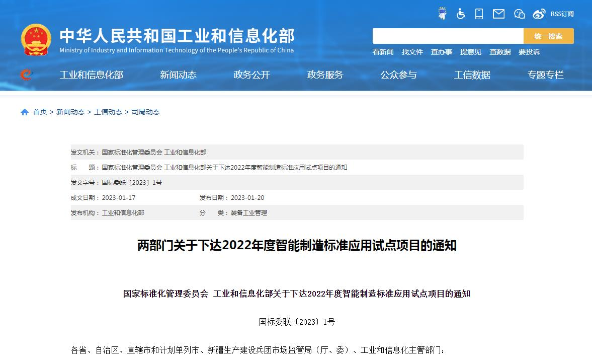 近日,國家標準化管理委員會、工業(yè)和信息化部公布了國家智能制造標準應用試點項目名單。