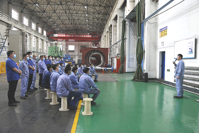 “全國勞動模范”、黑龍江省“龍江大工匠”、佳電股份首席技師、大型車間裝配工別林講授了《滑動軸承刮研理論知識》,把各種類型的軸瓦轉(zhuǎn)化成清晰明了的結(jié)構(gòu)組圖,將軸瓦油楔控油、油膜剛度、旋轉(zhuǎn)速度、刮研技巧與間隙、緊力控制等技術(shù)要點與關(guān)聯(lián)影響進行了深入淺出的講解和提煉,干貨滿滿令現(xiàn)場職工受益匪淺。