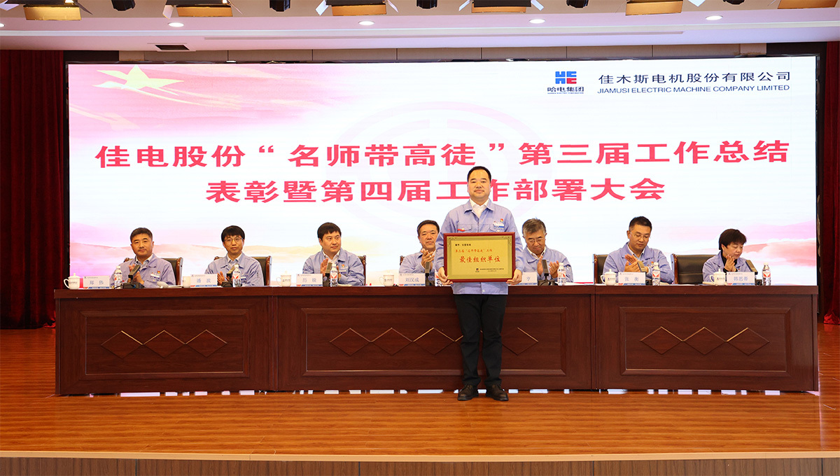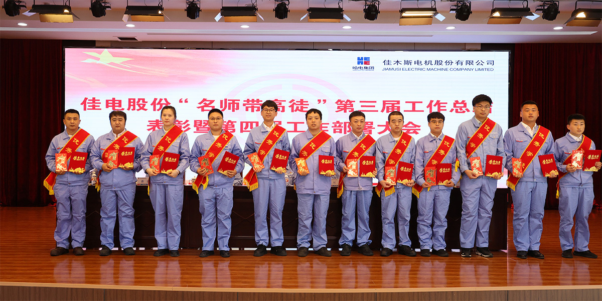 為深入學(xué)習(xí)貫徹黨的二十大和二十屆三中全會(huì)精神,貫徹落實(shí)習(xí)近平總書記關(guān)于產(chǎn)業(yè)工人隊(duì)伍建設(shè)改革的重要指示精神,大力弘揚(yáng)“勞模精神、勞動(dòng)精神、工匠精神”,充分發(fā)揮生產(chǎn)技術(shù)骨干人才的“傳幫帶”作用,9月27日,哈電集團(tuán)佳木斯電機(jī)股份有限公司(以下簡(jiǎn)稱“佳電股份”)召開“名師帶高徒”第三屆工作總結(jié)表彰暨第四屆工作部署大會(huì)。佳電股份黨委書記、總經(jīng)理劉漢成出席會(huì)議并講話,佳電股份黨委副書記、工會(huì)主席劉亨主持會(huì)議,佳電股份領(lǐng)導(dǎo)班子成員出席會(huì)議。