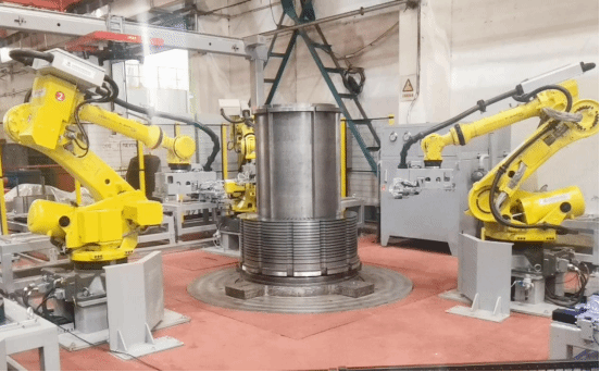 定子鐵心疊裝機(jī)器人工作單元,配備2D+3D視覺(jué)識(shí)別系統(tǒng)以及六軸關(guān)節(jié)機(jī)器人等設(shè)備,實(shí)現(xiàn)了電機(jī)定子鐵心的自動(dòng)疊裝。