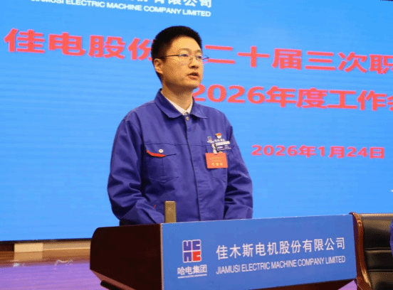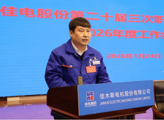 1月24日,哈爾濱電氣集團佳木斯電機股份有限公司(以下簡稱“佳電股份”)第二十屆三次職工代表大會暨2026年度工作會議勝利召開。大會堅持以習近平新時代中國特色社會主義思想為指導,深入學習貫徹習近平總書記對中央企業(yè)工作作出的重要指示精神,全面貫徹黨的二十大、二十屆歷次全會精神和中央經濟工作會議精神,貫徹落實集團公司黨委二屆二次全會和二屆三次職代會精神,總結工作,研判形勢,統(tǒng)籌部署2026年重點任務,動員全體干部職工堅定信心、迎難而上,以更高站位、更實舉措、更嚴作風,推動企業(yè)高質量發(fā)展、發(fā)展新質生產力邁上新臺階,為打造世界一流電驅動系統(tǒng)制造和服務企業(yè)筑牢根基。佳電股份領導班子成員出席會議。