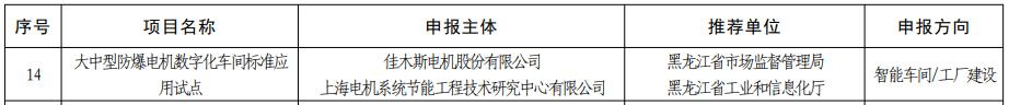 近日,國家標(biāo)準(zhǔn)化管理委員會、工業(yè)和信息化部公布了國家智能制造標(biāo)準(zhǔn)應(yīng)用試點(diǎn)項(xiàng)目名單。 哈電集團(tuán)佳電股份《大中型防爆電機(jī)數(shù)字化車間標(biāo)準(zhǔn)應(yīng)用試點(diǎn)》在全國眾多智能制造標(biāo)準(zhǔn)應(yīng)用試點(diǎn)項(xiàng)目的激烈角逐中勝出,順利通過國家組織的形式審查和專家論證以及公開征求意見,...